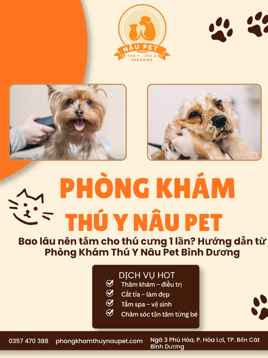 Hiểu rõ bao lâu nên tắm cho thú cưng 1 lần sẽ giúp thú cưng luôn khỏe mạnh và sạch sẽ. Nếu bạn cần dịch vụ chuyên nghiệp, Phòng Khám Thú Y Nâu Pet Bình Dương là lựa chọn uy tín tại Bến Cát.