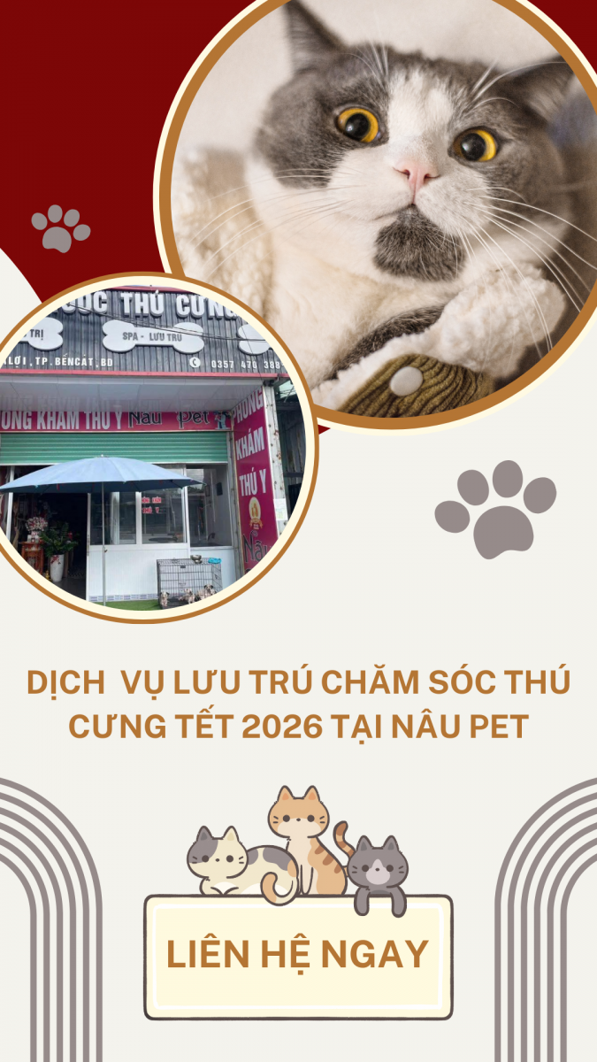 DỊCH VỤ LƯU TRÚ – KHÁCH SẠN THÚ CƯNG TẾT 2026 TẠI PHÒNG KHÁM THÚ Y NÂU PET