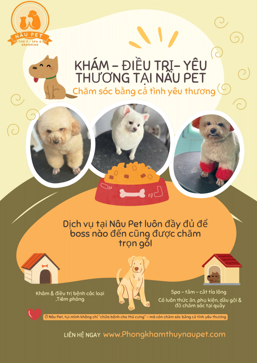 Nâu Pet tự hào là phòng khám thú y kết hợp spa và cửa hàng phụ kiện, tạo nên hệ sinh thái chăm thú cưng trọn gói tại Bình Dương.